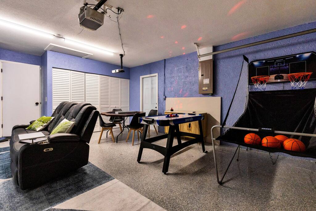 Centrally Located: ✰ 5 Min – Indian Rocks Beach ✰ 5 Min – Shopping plaza & restaurants ✰ 15 Min – Clearwater beach ✰ 5 Min - Walsingham Park and Florida Botanical Garden ✰ 20 Min – Tampa International Airport ✰25 Min- Tampa Internationa Mall 🛏 Bedrooms Master Suite: King bed, walk in closet, seating area (2 Sleepers) -Baby crib is available upon guests request. Bedroom 2: Queen bed (2 sleepers) Bedroom 3: Two Full beds (4 sleepers) Bedroom 4: Twin bunk beds (sleepers 4) 🍽 Kitchen & Dining A modern kitchen with everything you need for cooking and entertaining: 🍳 High-end appliances, full cookware, and a stocked coffee bar ☕ (Keurig, condiments, tea, and more) 🍽 Indoor Dining table seating for 8 🍽 Outdoor Dining in the patio table seating for 4 🛋 Living Room 1 Bright and open, ideal for relaxing or gathering: Modern sectional sofa ,Smart TV 🛋 Living Room 2 Bright and open, ideal for relaxing or gathering: Modern sectional sofa, Smart TV Amenities pool Sauna (6 guests) Hottub (6-8 Guests) Fire pit (BYO propane) BBQ grill (BYO propane) GAME ROOM (Indoor) Pool Movie theater with reclining seats, Foosball, Basketball shooting, wall Darts, karaoke stage. OUTDOOR Entertainment Mini golf & disc golf, ladder toss, giant Jenga, Connect 4, Yoga mats, free weights stretch belts Guests will be required to sign rental agreement prior to check in.